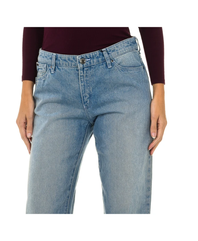 Обновите свой гардероб с помощью этих прямых женских джинсов Armani Jeans. Модель имеет пояс с петлями для ремня, застежку на молнию и пуговицу, два передних кармана (один с мини-карманом) и два задних кармана с металлизированным логотипом. Прямой крой с тональными швами. Изготовлены из 100% хлопка. Инструкции по уходу: Машинная стирка при температуре до 30°C. Гладить при средней температуре, максимум 110°C. Сушить в сушилке при низкой температуре. Не отбеливать. Не подвергать химчистке.