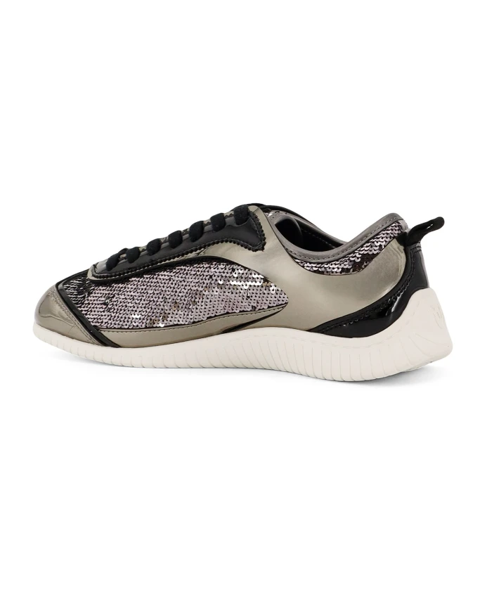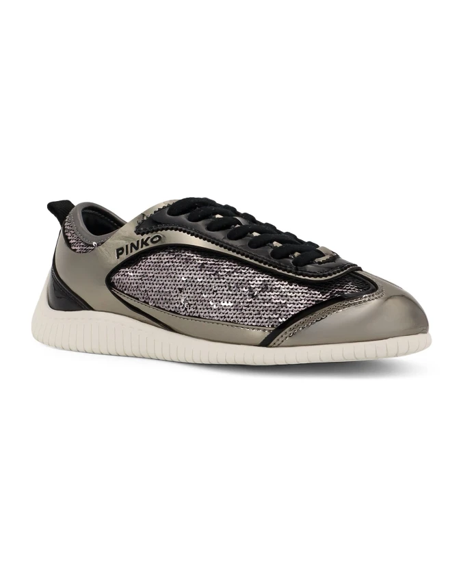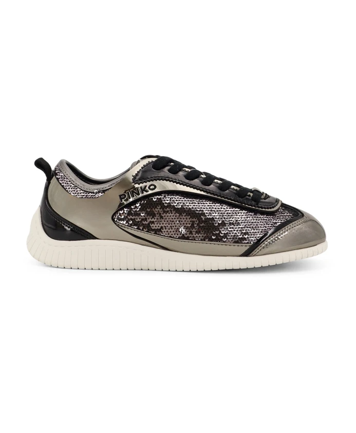 Кроссовки PINKO Reby 10 сочетают в себе низкий силуэт на шнуровке с зеркальными пайетками и фирменной деталью Loving Birds, создавая стильный образ на каждый день. Ключевые особенности: Серый | Полиэстер | Резиновая подошва | Шнуровка | Низкий силуэт | Зеркальная ткань с пайетками | Вышивка логотипа сбоку | Рельефная деталь Loving Birds на задней части | Прошитые боковые части | Размеры и посадка: итальянские размеры (IT) | Состав материала и уход: 100% полиэстер | Подошва: 100% резина