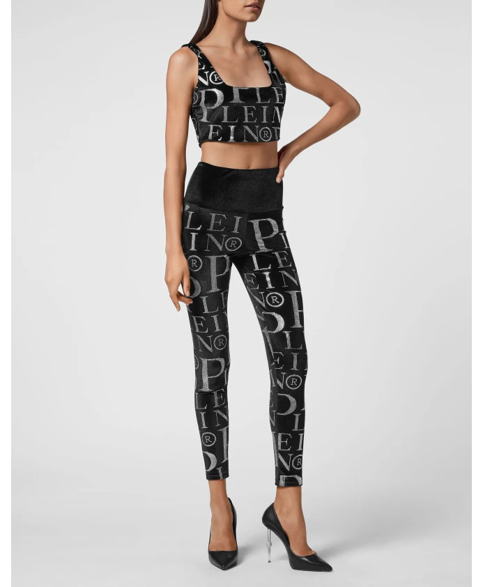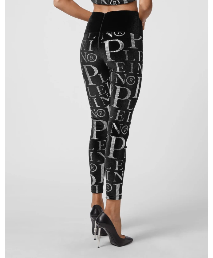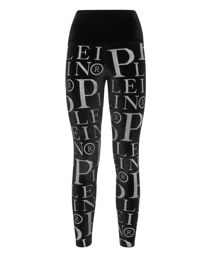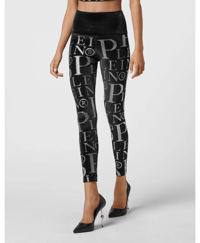 Бархатные леггинсы, покрытые стразами Philipp Plein, черный