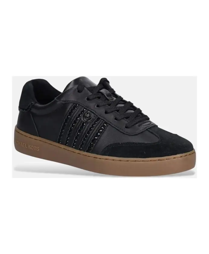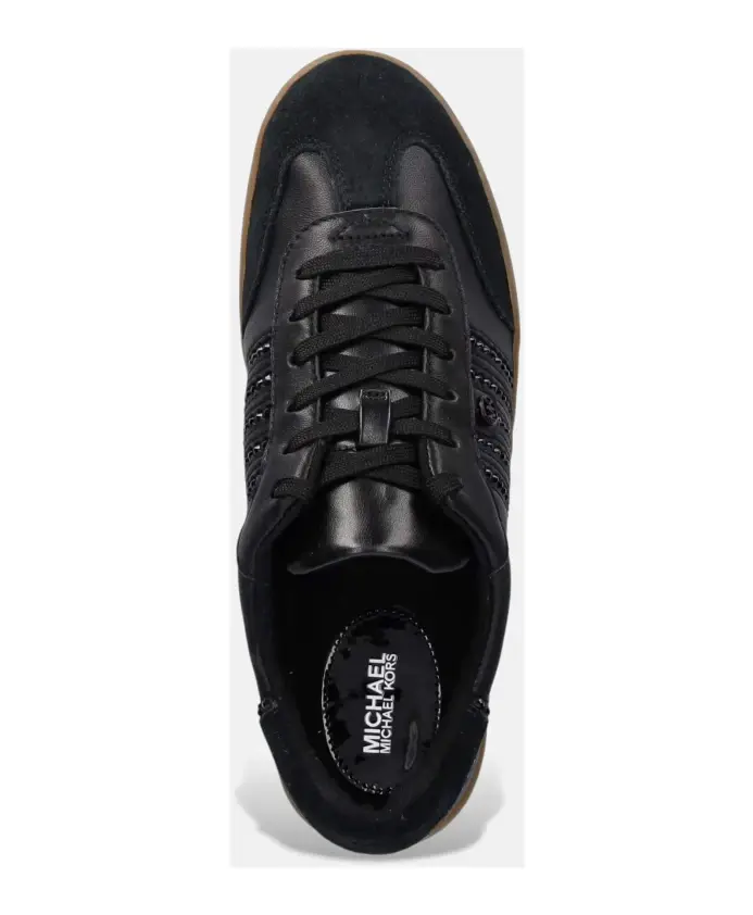 Кроссовки Michael Kors Scotty сочетают в себе кожу и замшу с декоративными заклепками и подвеской с логотипом, создавая изысканные низкие кеды, идеально подходящие для повседневной носки и сочетания со светлыми джинсами. Ключевые особенности: Черный | Кожа и замша | Шнуровка | Платформа | Низкий силуэт | Декоративные заклепки | Подвеска с логотипом | Миндалевидный носок | Размеры и посадка: Толщина платформы: 3,2 см | Состав и уход: Кожа | Замша | Хлопок (подкладка) | Резина (подошва)
