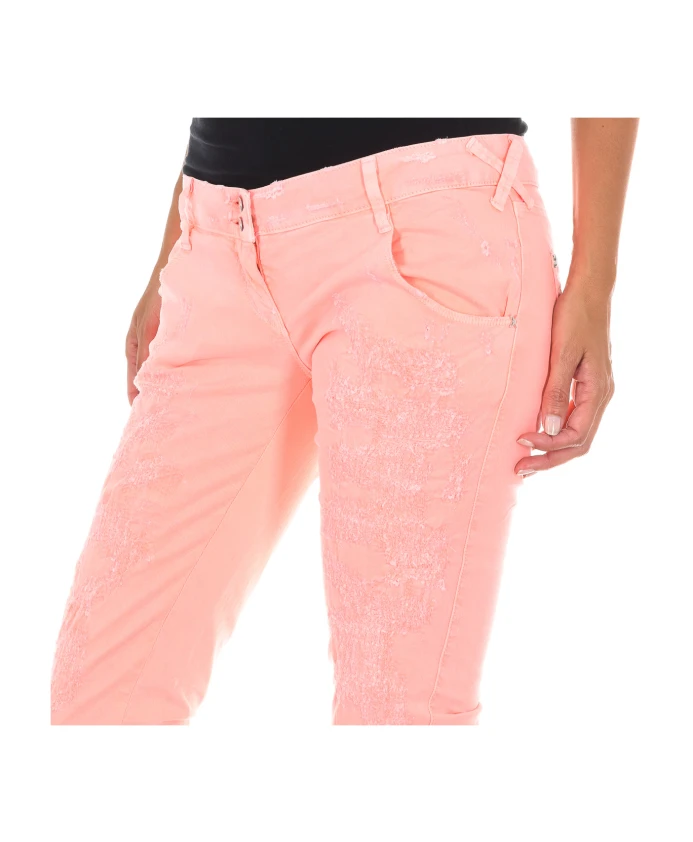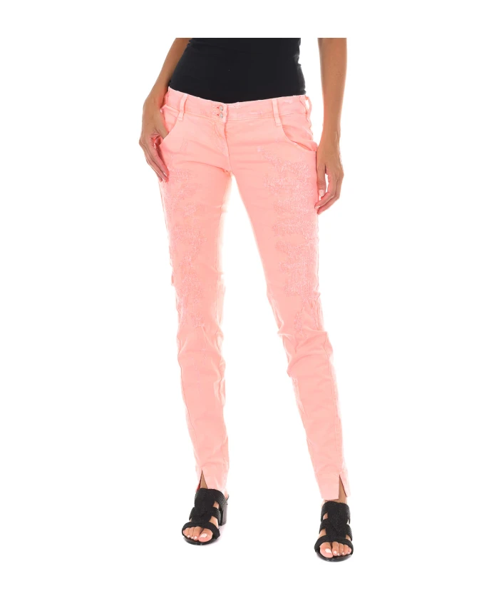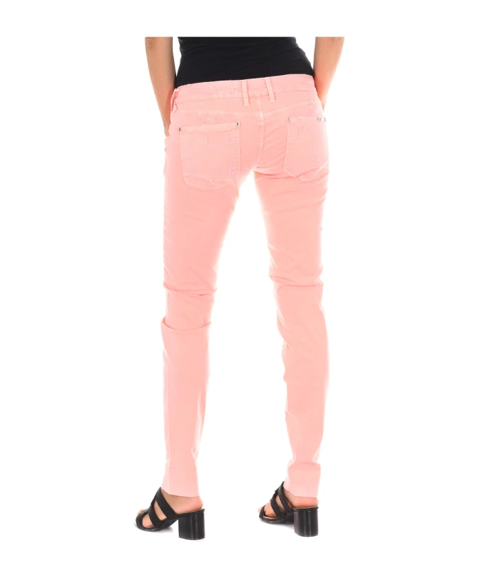 Длинные узкие джинсы от MET для женщин. Модель с петлями для ремня, застежкой на пуговицу и молнию спереди, двумя открытыми передними карманами, двумя открытыми задними карманами с металлизированной отделкой с названием бренда, стеганым эффектом, узкими штанинами и видимыми швами в тон. Состав: 98% хлопок, 2% эластан. Инструкции по уходу: машинная стирка при температуре до 40°C, глажка при средней температуре до 110°C, сушка в сушильной машине, не отбеливать, не подвергать химчистке.