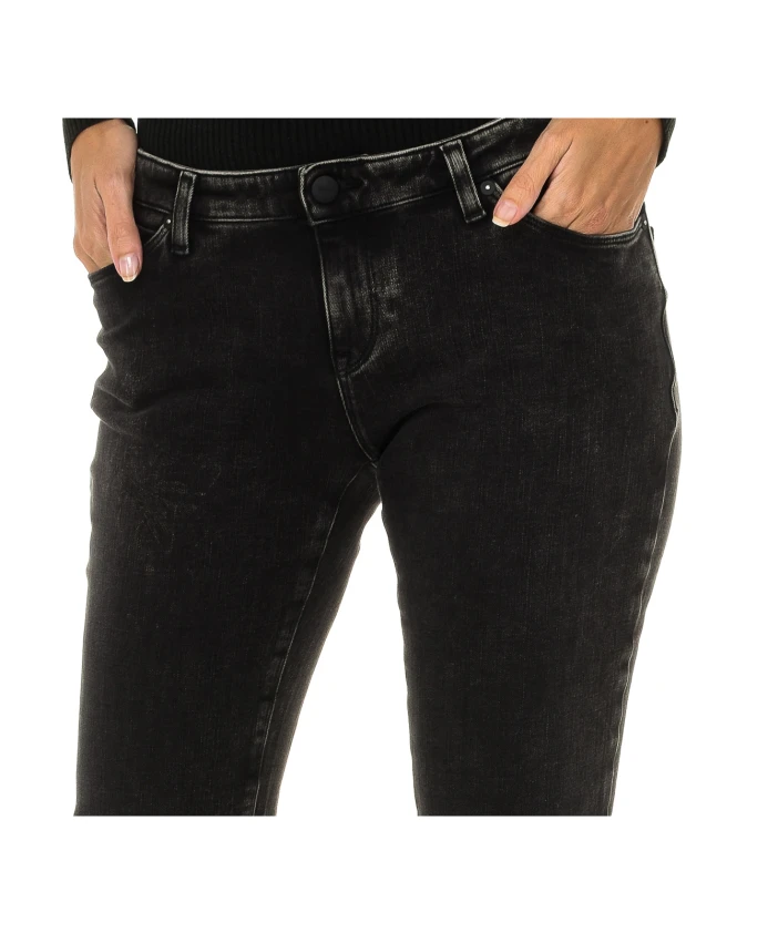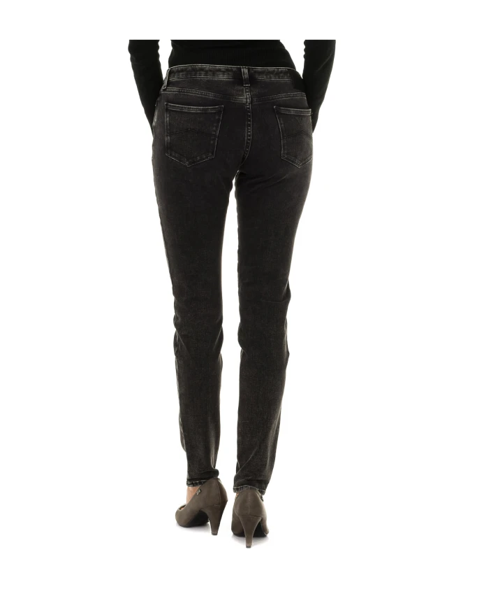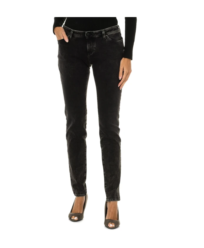 Джинсы Armani Jeans зауженного кроя для женщин. Длинные джинсовые брюки с петлями для ремня. Застежка на молнию и пуговицу спереди. Два передних кармана и один небольшой карман. Два задних кармана с металлическим логотипом. Эластичная ткань с видимыми швами в тон. Состав: 90% хлопок, 7% полиэстер, 3% эластан. Инструкции по уходу: Машинная стирка при температуре до 30°C. Гладить при средней температуре, максимум 110°C. Сушка в сушильной машине. Не отбеливать. Не подвергать химчистке.