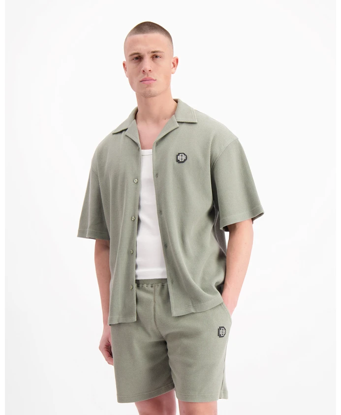 Рубашка с монограммой и вафельной отделкой Black Bananas, зеленый