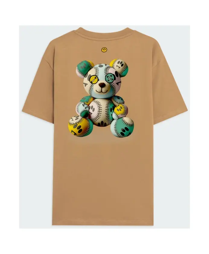 Футболка Barrow Jersey от Barrow - это хлопковая футболка свободного кроя с фирменным логотипом в виде смайлика на груди и красочным изображением плюшевого мишки из бейсбольных мячей на спине. Основные характеристики: Бежевый | Цвет: светло-коричневый | Хлопок | Круглый вырез | Короткие рукава | Логотип в виде смайлика на левой стороне груди | Изображение на спине: Плюшевый мишка из цветных бейсбольных мячей | Размеры и посадка: Свободный крой | Состав материала и уход: 100% хлопок