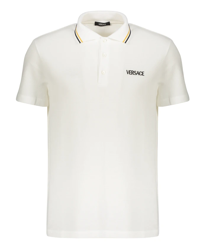 Хлопковая рубашка-поло с вышитым логотипом. Versace, белый