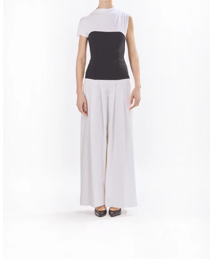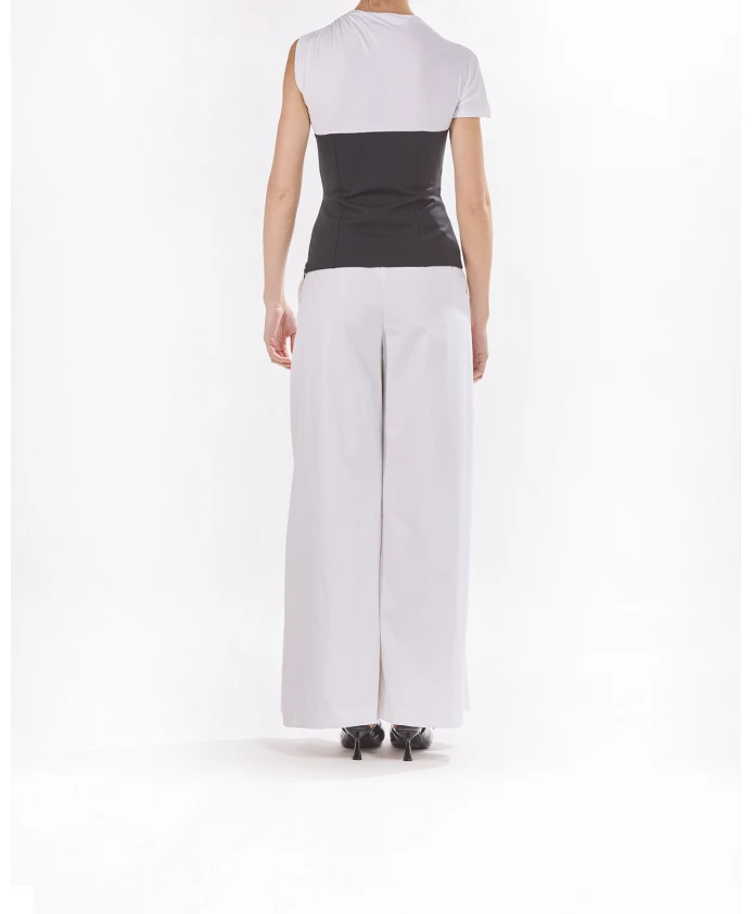Футболка KARL STUDIO в бело-черном цвете. Футболка из смесовой ткани с монохромным дизайном из новой коллекции Karl Studio от Карла Лагерфельда. Изделие имеет один рукав и элегантную драпировку на левом плече, а по низу - боковой разрез с потайной молнией и вышивкой KARL Autograph в тон. Дизайн из смесовой ткани. Один рукав. Драпировка на левом плече. Боковой разрез с потайной молнией. Вышивка KARL Autograph в тон. Цвет: белый/черный. 95% вискоза, 5% эластан. Сделано в Португалии.