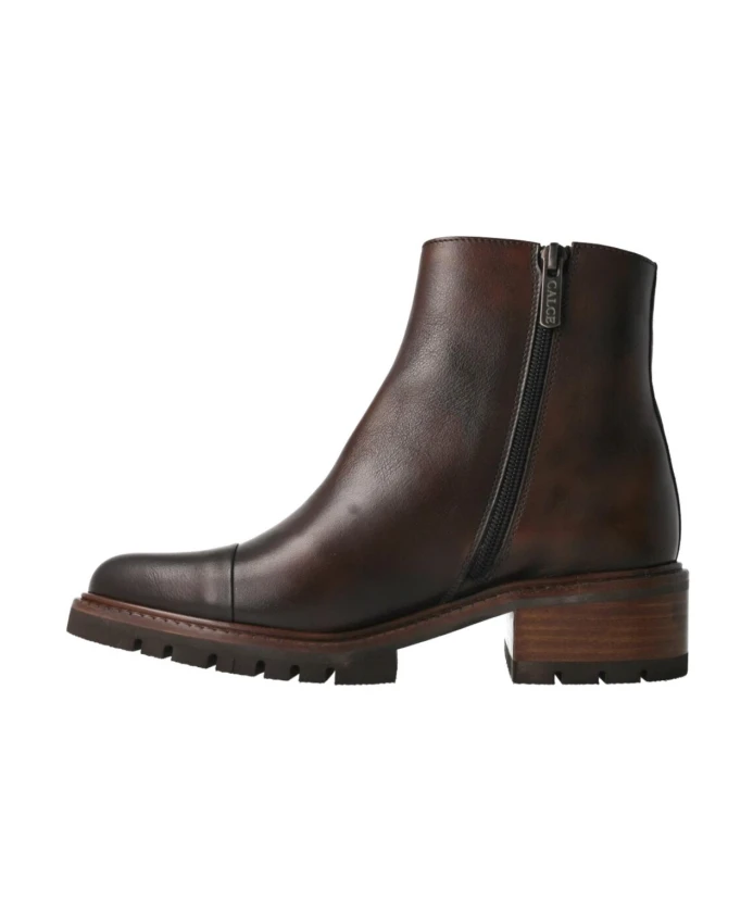 Ботильоны Calce из состаренной коричневой кожи с каблуком под дерево и легкой рифленой резиновой подошвой. Эти универсальные зимние ботинки подойдут как к формальному, так и к повседневному стилю. Основные характеристики: Коричневый | Marrón | Кожа | Застежка-молния сбоку | Кожаная подкладка и стелька | Легкая рифленая резиновая подошва | Отделка под состаренную кожу | Каблук под дерево | Силуэт ботильонов | Размеры и посадка: Высота каблука: 4,5 см | Состав и уход: Кожа | Резина