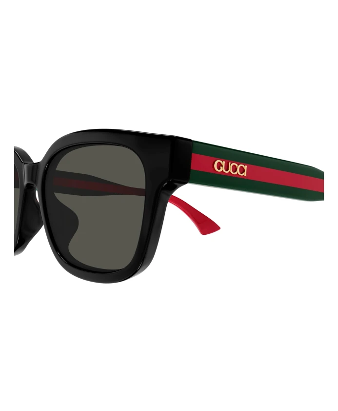 Подчеркните свой стиль с помощью этих мужских солнцезащитных очков Gucci. Оправа выполнена в классическом стиле с декоративными элементами в виде сетки на дужках средней высоты, имеет квадратную форму и корейский крой, а также новый логотип «Gucci» золотого и серебряного цвета на дужке. Цветовая палитра одновременно коммерчески привлекательна и стильна, с культовыми деталями в виде сетки в зелено-красно-зеленых тонах. Изготовлены из глянцевого черного ацетата. Размер: 56-18-145.