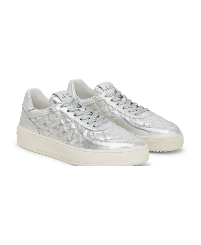 Поднимите свой стиль на новый уровень с кроссовками SW Courtside Sleek от Stuart Weitzman. Созданные в Италии, эти кроссовки сочетают в себе классический теннисный силуэт с современными элементами, включая металлизированную и стеганую металлизированную кожу для стильного вида. Ключевые особенности: Серебристый | Серый | Металлизированная кожа | Дышащая сетчатая подкладка | Цепкая подошва | Классический теннисный силуэт | Современный дизайн | Размер и посадка: Стандартная посадка