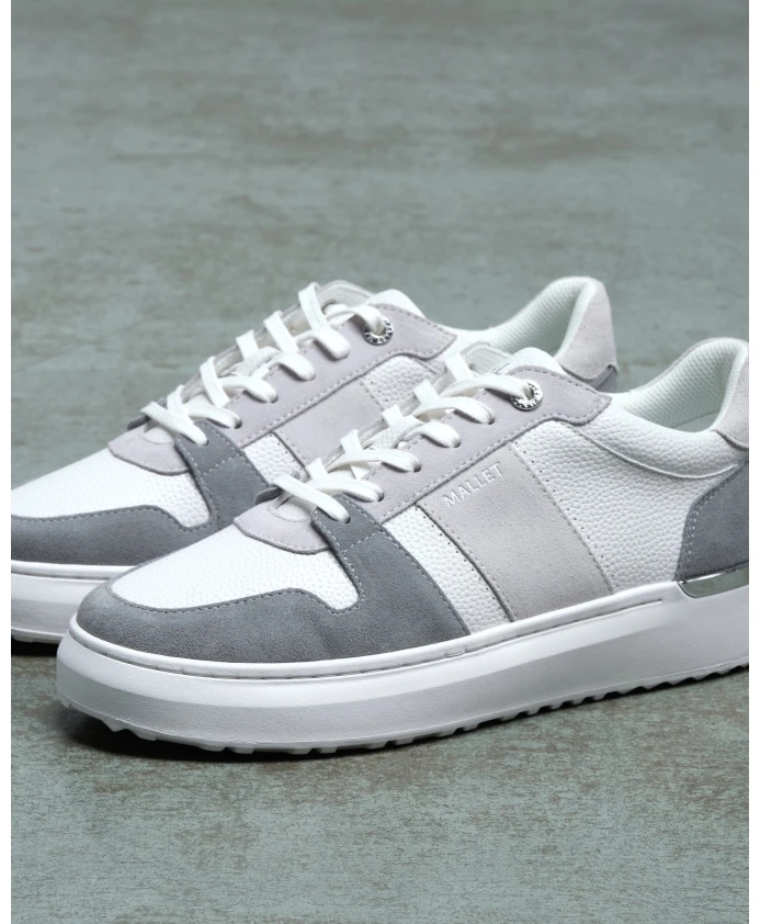 Подчеркните свой стиль с помощью кроссовок Hoxton Lite белого и серого цвета от Mallet London. Изготовленные из высококачественных материалов, эти кроссовки сочетают белую кожу и серые замшевые накладки, создавая изысканный образ. Серебряные детали и полированная серебряная задняя часть добавляют элегантности, а стелька OrthoLite HybridPlus обеспечивает превосходный комфорт. Идеальные для любого случая, эти кроссовки предлагают современный, но в то же время классический дизайн.