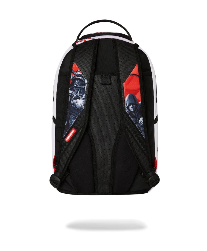 DLXV = 100% ECOPELLE Передний карман на молнии Боковые карманы Скрытый карман на молнии Отдельное отделение для солнцезащитных очков с бархатной отделкой Эргономичная сетчатая спинка Регулируемые лямки для индивидуальной подгонки Молнии с металлической фурнитурой Значок "Sprayground Authentic" Задняя панель крепится к ручной клади для удобства использования без помощи рук Отдельное отделение для ноутбука Прочная, водоотталкивающая веганская ткань Ecopelle Прибл. 46 x 30 x 15 см