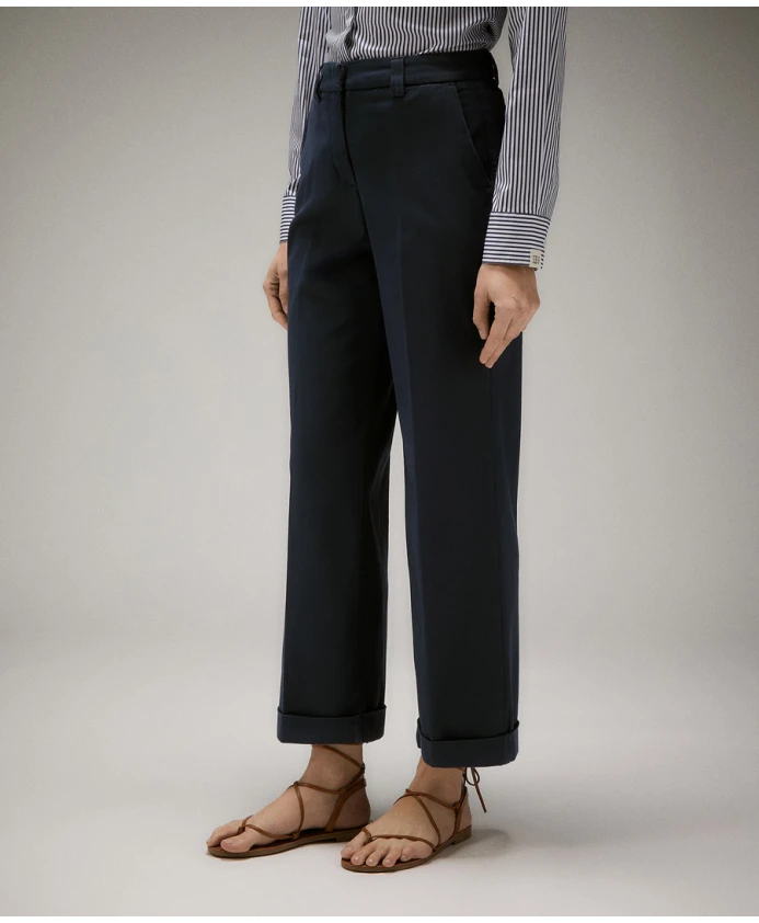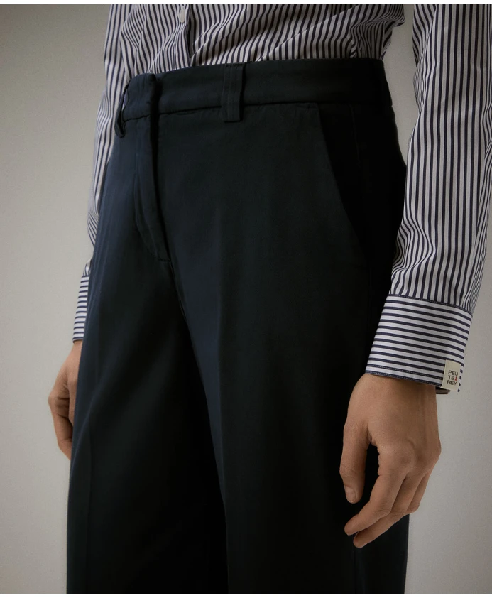 Прямые брюки из эластичного хлопка от Peuterey - это стильный образ с ноткой спортивности, идеально подходящий для разнообразных и изысканных нарядов. Эти брюки имеют прямой крой и стандартную посадку, подчеркнутую вышитой трилогией на заднем кармане. Ключевые особенности: Синий | Эластичный хлопковый габардин | Шлевки для ремня | Французские передние карманы | Прорезные карманы сзади | Ребристые манжеты на щиколотках | Вышитая трилогия | Размеры и посадка: Стандартная посадка