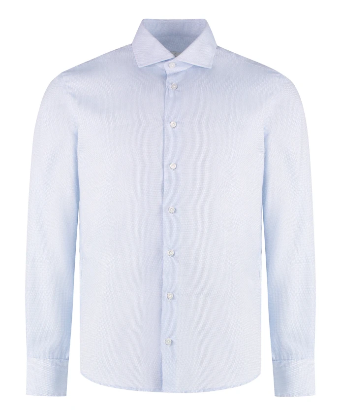 Хлопковая рубашка Bastoncino с принтом - это легкая рубашка с застежкой на пуговицы и закругленным низом для создания элегантного повседневного образа. Она предназначена для стильных повседневных нарядов, от офиса до поездок на выходные. Ключевые особенности: Синий | Светло-синий | Хлопок | Застежка на пуговицы | Манжеты на пуговицах | Застежки на пуговицы на рукавах | Закругленный низ | Принт | Длинные рукава | Состав материала и уход: 100% хлопок | Машинная стирка при 30°C.