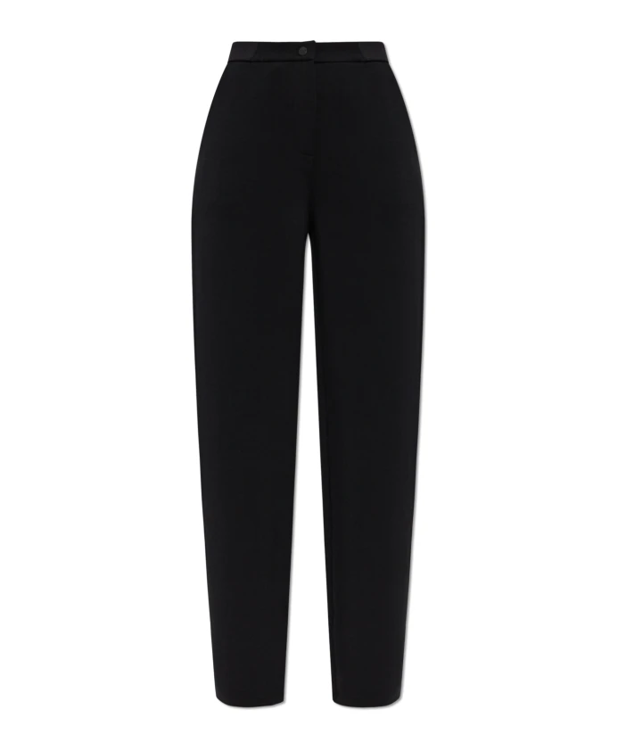 Представляем брюки с логотипом от известного бренда Emporio Armani. Эти черные брюки из эксклюзивной коллекции отличаются классической высокой талией и свободным кроем для создания повседневного стиля. Ключевые характеристики: Черный | Полиэстер | Вискоза | Эластан | Высокая талия | Свободный крой | Пуговица с тисненым логотипом | Посадка: Свободный стиль | Состав и уход: Полиэстер | Вискоза | Эластан | Машинная стирка в холодной воде, сушка в барабане при низкой температуре