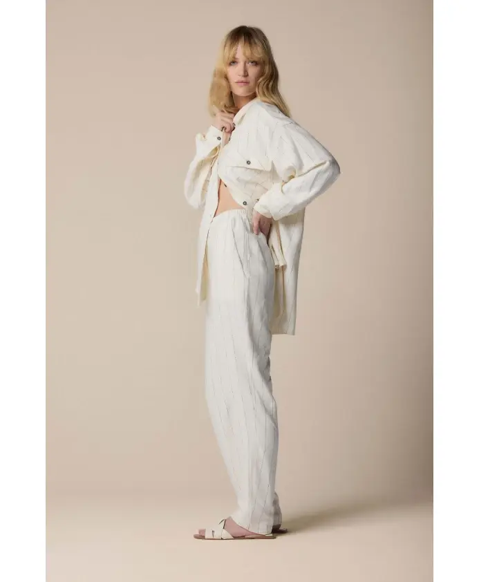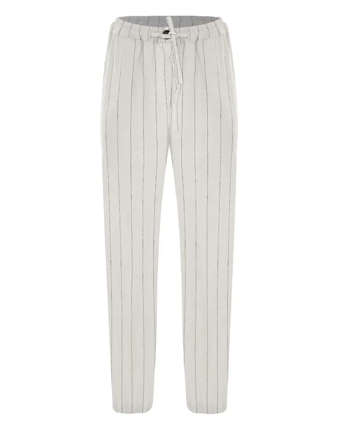 Эти элегантные хлопковые брюки от Kocca сочетают прямой силуэт с едва заметным принтом в виде черных линий, создавая изысканные, повседневные и деловые образы. Идеально подходят для работы или мероприятий в стиле smart-casual. Ключевые особенности: Белый | Кремовый | Черный | Хлопок | Эластичный пояс | Застежка на пуговицы | Пояс/узел | Прямой крой | Легкий принт в виде черных линий | Деталь в виде узла на талии | Размеры и посадка: Прямой крой | Доступны размеры от XS до XL