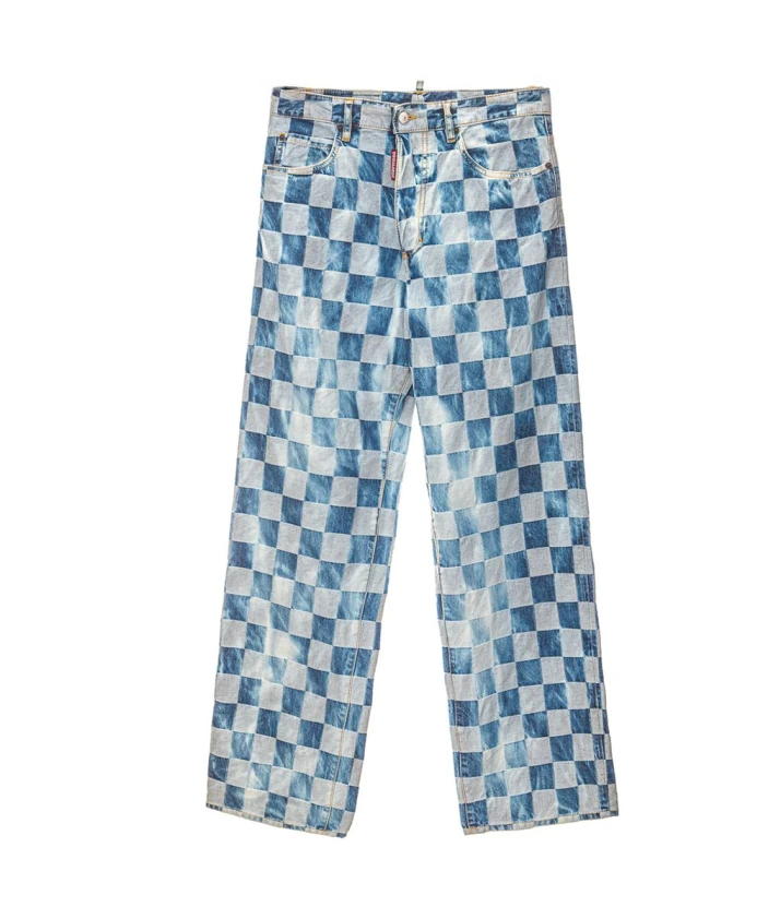 Джинсы Dsquared2 San Diego Check сочетают в себе клетчатый принт и эффект потертости, создавая расслабленный, слегка поношенный вид. Высокая талия и свободный силуэт делают их идеальными для повседневной носки. Ключевые особенности: Синий | Хлопок | Застежка на пуговицах | Пять карманов | Логотип на ширинке | Клетчатая ткань | Эффект потертости | Кожаная нашивка сзади с тисненым логотипом в тон | Размеры и посадка: Высокая талия | Свободный крой | Состав и уход: 100% хлопок