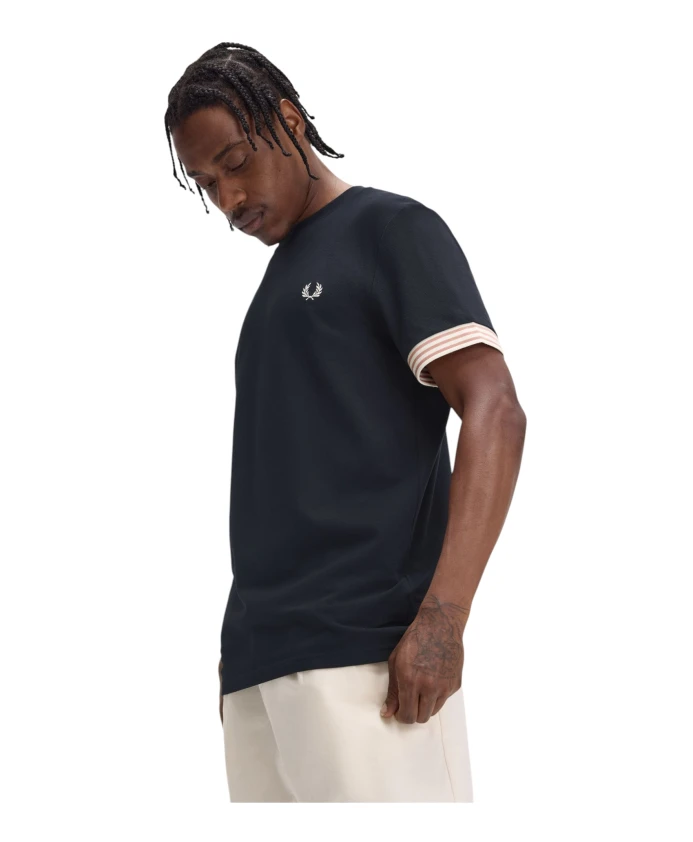 Полосатая футболка с манжетами Fred Perry, синий