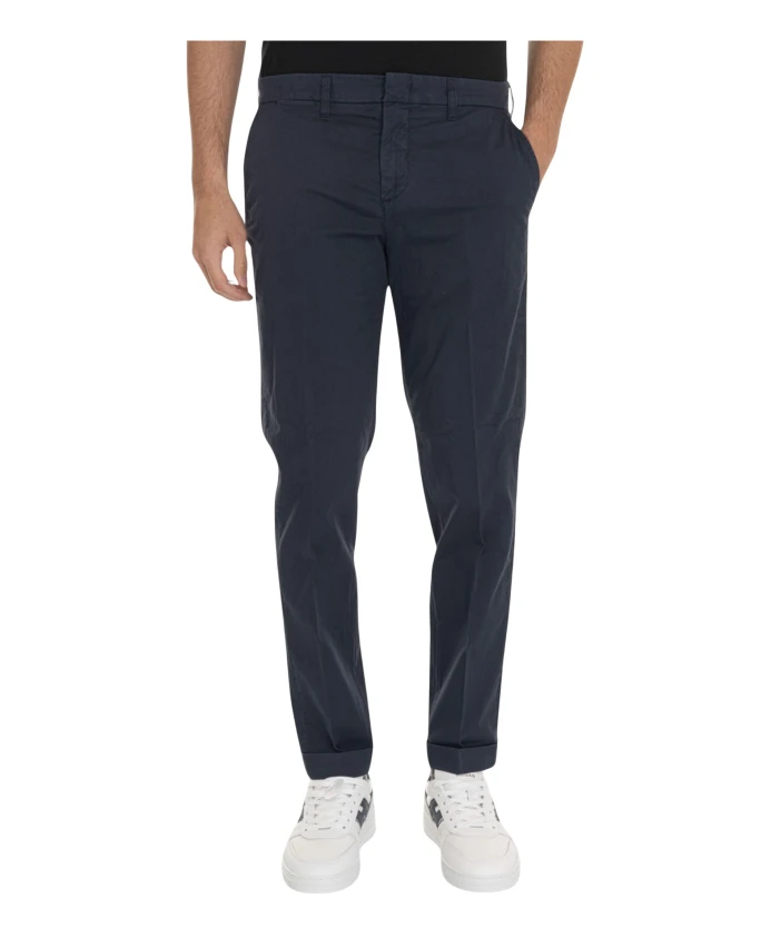 Брюки-чиносы FAY имеют зауженный, приталенный силуэт и эластичный материал для комфорта в течение всего дня. Простой однотонный дизайн и подвернутый низ делают их идеальными для повседневных образов и офисных дел. Ключевые особенности: Синий | Хлопок | Застежка на пуговицу и потайную молнию | Логотип на правом кармане | Подвернутый низ | Однотонный цвет | Силуэт чинос | Размеры и посадка: Ширина штанины внизу: 16 см | Зауженный крой | Состав и уход: 96% хлопок | 4% эластан