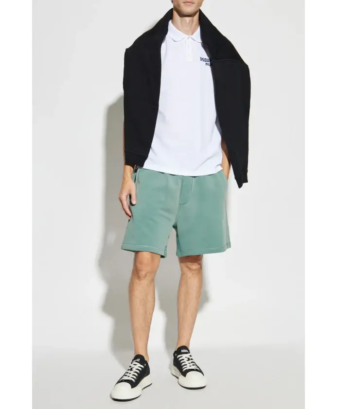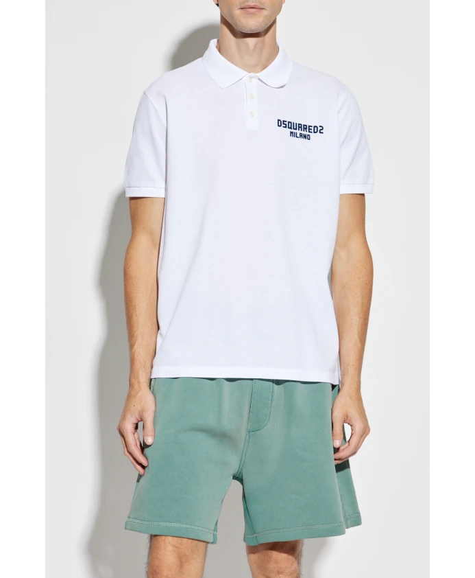 Поло LOGO от DSQUARED2 - это воплощение вневременной элегантности с современным акцентом. Выполненное в сияющем белом цвете из тщательно отобранного хлопкового трикотажа, оно впечатляет своей гладкой текстурой и классическим, слегка свободным кроем. Простой крой дополнен короткими рукавами с легкой ребристой отделкой, традиционным воротником-стойкой и сдержанной застежкой на три белые пуговицы. Контрастный темно-синий акцент выделяется на фоне минималистичного дизайна.