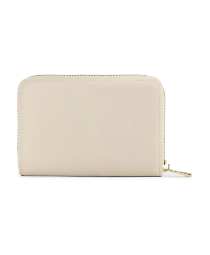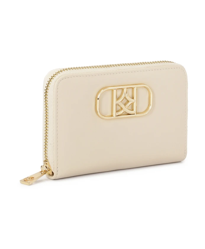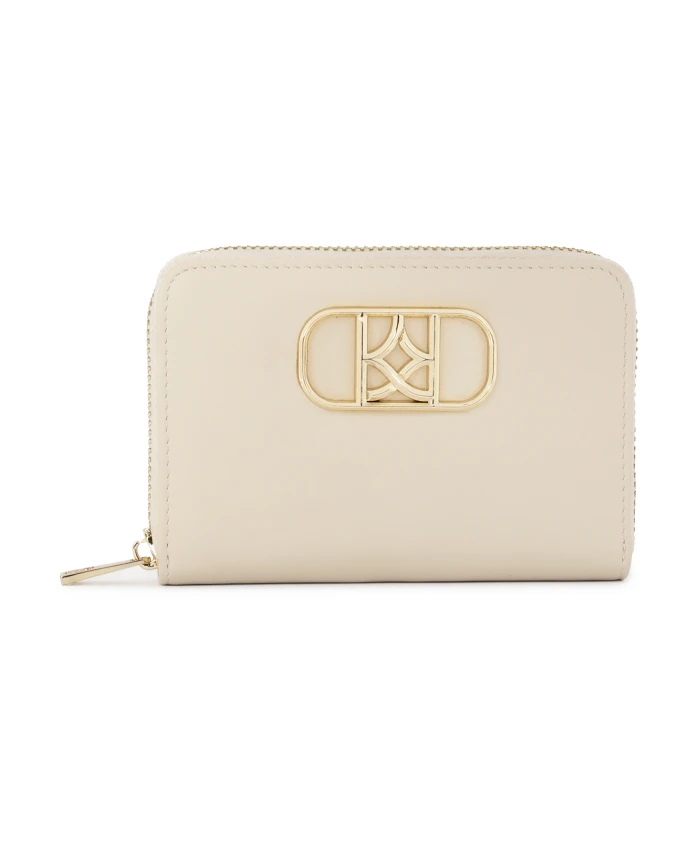 Этот кошелек из натуральной кожи кремового цвета сохраняет свой компактный и элегантный характер, но его светлый нейтральный оттенок придает ему утонченный современный вид. Металлическая молния надежно защищает содержимое кошелька от выпадения. Декоративная монограмма золотистого цвета украшает переднюю часть этой модели, прекрасно гармонируя с другими элементами. Этот светлый кошелек идеально подойдет тем, кто ценит минималистичный, но в то же время изысканный стиль.