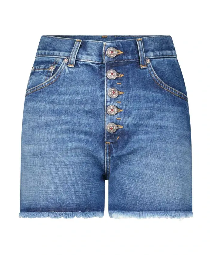 Джинсовые шорты Dondup сочетают в себе классический деним с пятью карманами и изысканные детали - высокую талию, пять декоративных пуговиц и едва заметные металлические цветочные аппликации - создавая стильную базовую вещь для теплой погоды. Сделано в Италии. Ключевые особенности: Синий | Деним | Пять карманов | Застежка на пуговицы | Бахрома по низу | Незаметные металлические цветочные детали | Пять декоративных пуговиц | Размер и посадка: Узкий крой | Высокая талия