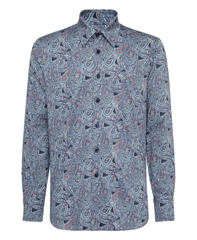 Рубашка Billionaire Milano Paisley изготовлена из поплинового хлопка с принтом «пейсли» по всей поверхности и легко сочетается с пиджаком или джинсами. Ключевые особенности: Синий | Черный | Темно-синий | Поплиновый хлопок | Эластичная ткань | Манжеты на пуговицах | Принт «пейсли» | Воротник с небольшими листьями | Логотип | Квадратные пуговицы из перламутра на манжетах | Размеры и посадка: Золотистый/Стандартный крой | Состав ткани и уход: 97% хлопок | 3% эластан