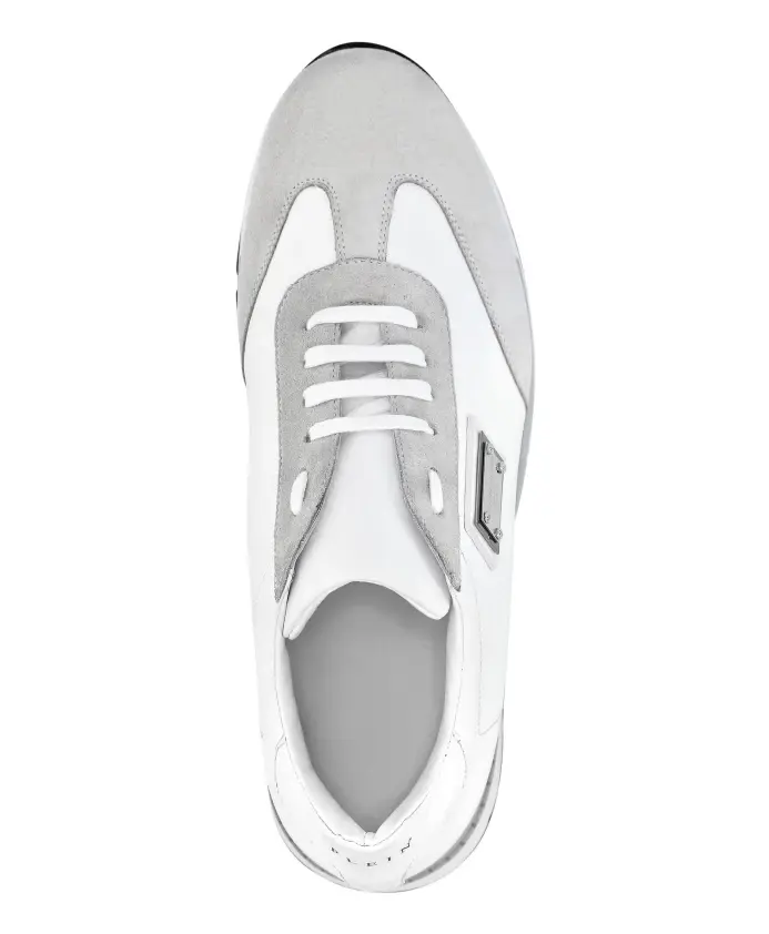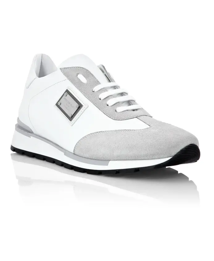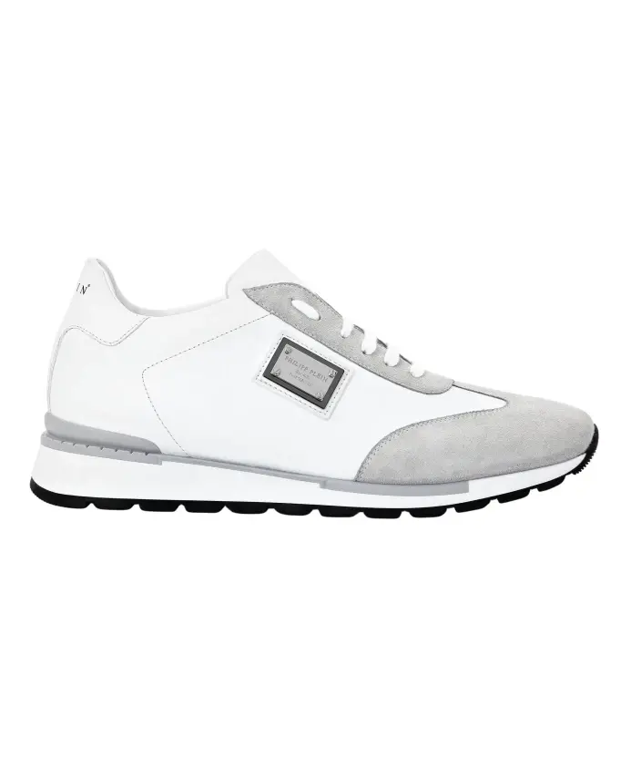 Кроссовки Philipp Plein Runner из замши и кожи наппа, отличающиеся металлическим логотипом на боковой части и двухцветной, высокоамортизирующей подошвой для повседневного комфорта и уличного стиля. Ключевые особенности: Белый цвет | Замша и кожа наппа | Нескользящая резиновая подошва | Высокоамортизирующая подошва | Шнурки в тон | Мягкий воротник | Подкладка | Съемная стелька | Металлический логотип на боковой части | Двухцветная подошва | Низкий силуэт кроссовок