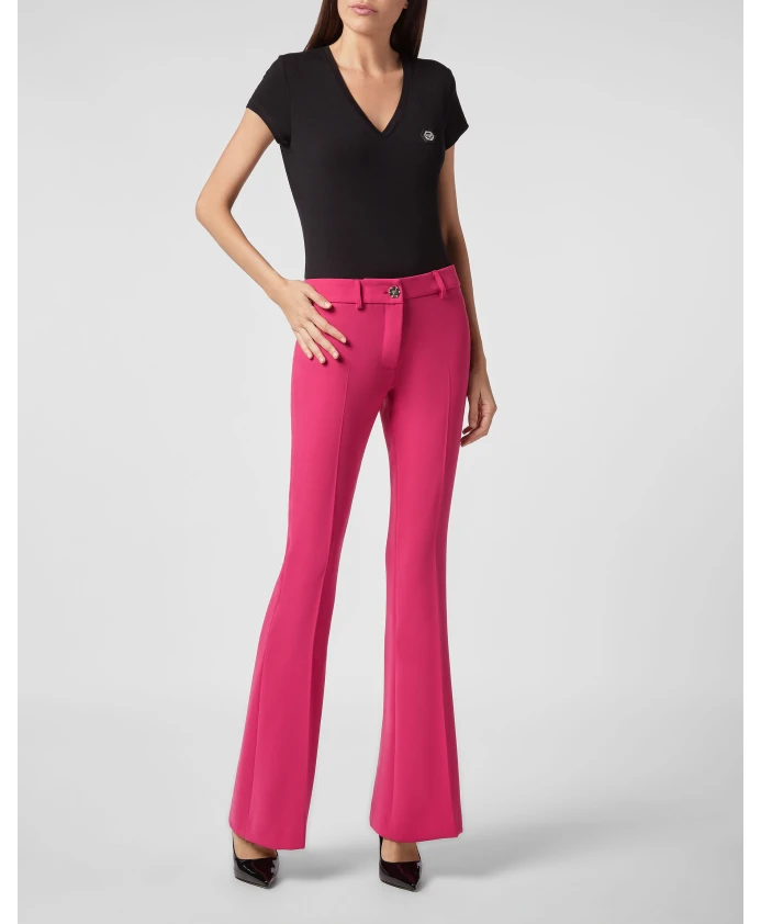 Брюки-клеш Philipp Plein - это универсальная вещь, сочетающая расклешенный силуэт с шестиугольной декоративной пуговицей, создающая изысканный образ, подходящий ко всему. Ключевые особенности: Розовый | Фуксия | Смесь вискозы | Застежка на одну шестиугольную декоративную пуговицу | Без карманов | Расклешенный силуэт | Шестиугольная декоративная пуговица | Отделка кади | Чистые, лаконичные линии | Размеры и посадка: Расклешенный крой | Состав и уход: Смесь вискозы