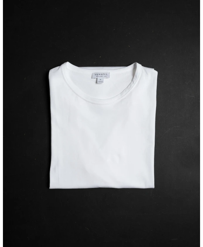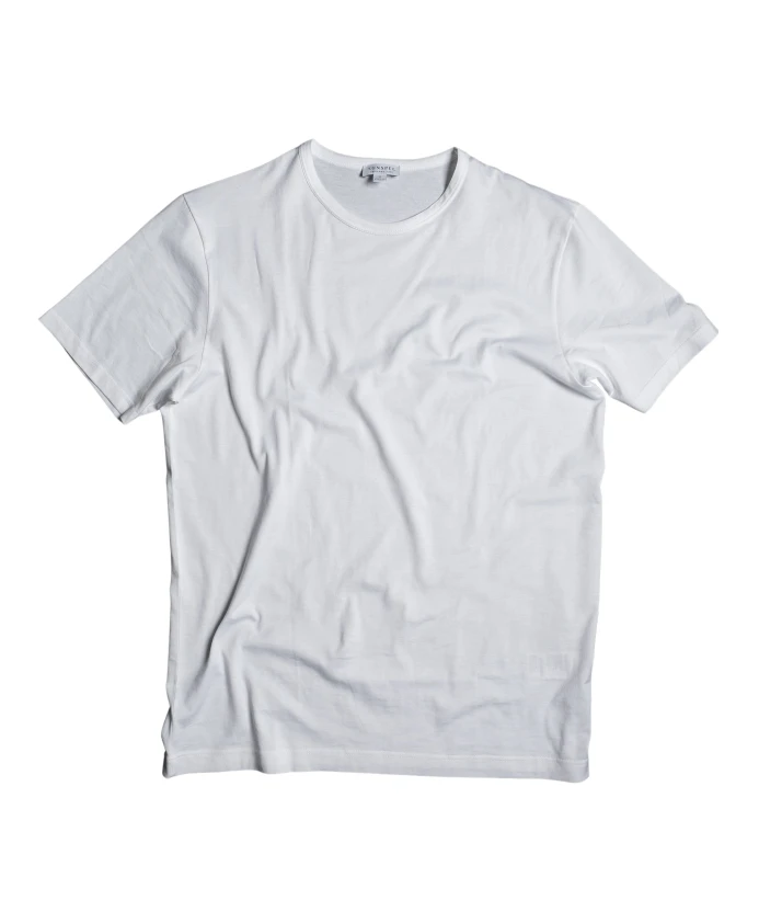 Классическая футболка Sunspel - это легкая базовая вещь от британского бренда Sunspel. Она изготовлена из хлопка Supima, что обеспечивает гладкость, прочность и комфорт. Ключевые характеристики: Белый | Хлопок Supima | Легкая ткань | Прочная | Приятная на ощупь | Удобная в носке | Круглый вырез | Прямой крой | Размер и посадка: Приталенный | Состав ткани и уход: 100% хлопок Supima | Бережная стирка при 30°C. Не сушить в сушильной машине. Не подвергать химчистке.