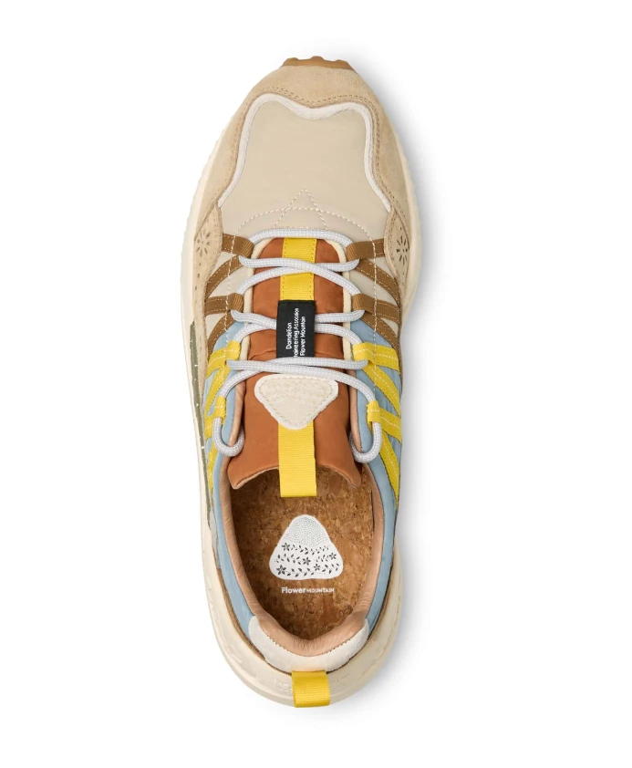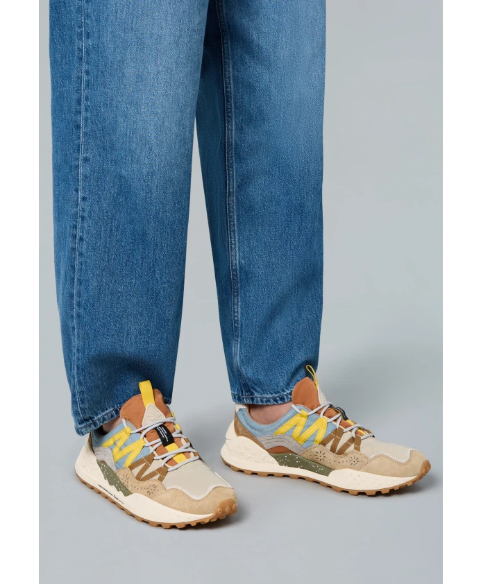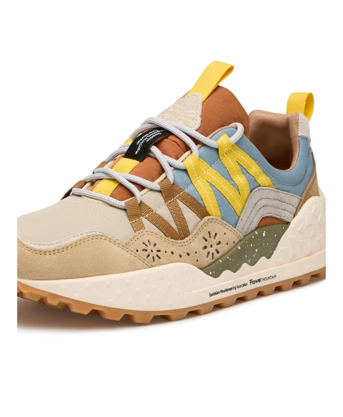 Спортивные кроссовки с двухцветным верхом из технической ткани, контрастными боковыми панелями и формованными замшевыми вставками. Шнуровка с трекинговыми шнурками и петлей на язычке и пятке. Подкладка из кожи и текстиля, а также антибактериальная стелька из натуральной пробки обеспечивают превосходный комфорт. Резиновая подошва с формованным краем и контрастными деталями. Обувь Flower Mountain обычно большемерит; рекомендуется заказывать на один размер меньше.