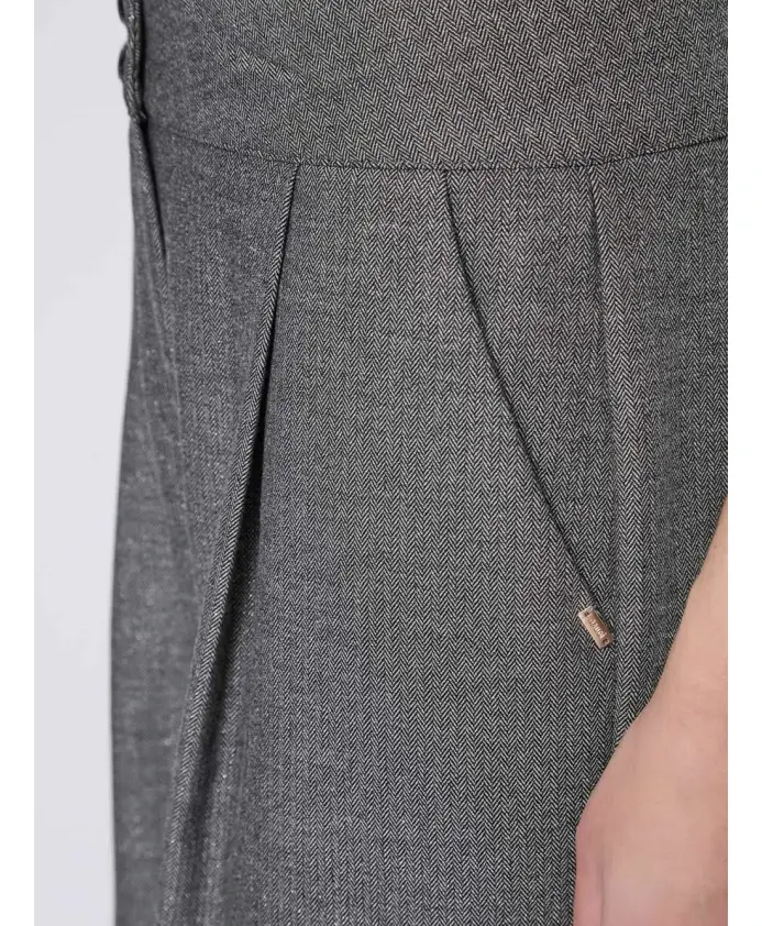 Брюки-палаццо Gaudì сочетают в себе приталенный крой и струящиеся широкие штанины, создавая элегантный и изысканный силуэт. Высокая талия и точные вытачки делают их идеальным выбором для элегантных дневных или вечерних образов. Ключевые характеристики: Серый | Серый Черный Люрекс | Смесь вискозы | Эластичная ткань | Высокая талия | Широкие штанины-палаццо | Приталенный крой | Вытачки | Размеры и посадка: Приталенный крой | Ткань и уход: Эластичная смесь вискозы