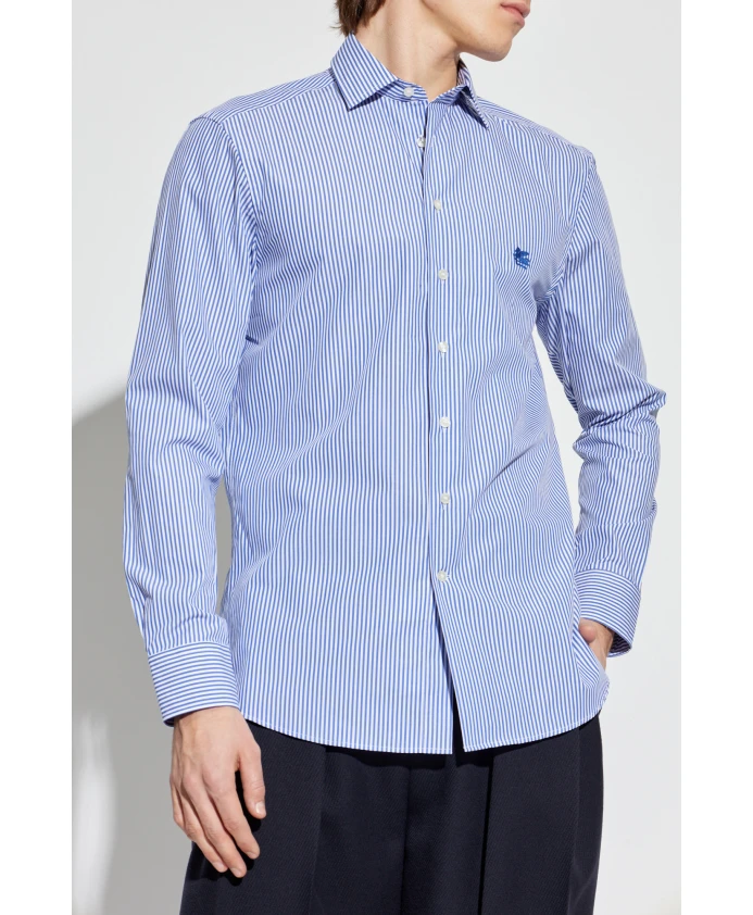Эта полосатая рубашка от Etro сочетает в себе традиционный итальянский крой и тонкий вертикальный полосатый узор, что делает ее идеальной для торжественных случаев и праздничной одежды. Ключевые особенности: Синий | Хлопок | Застежка на пуговицы | Без карманов | Длинные рукава | Элегантный воротник | Тонкий вертикальный полосатый узор в сине-белых тонах | Вышитый логотип крылатого льва | Размеры и посадка: Стандартный крой | Состав материала и уход: 100% хлопок