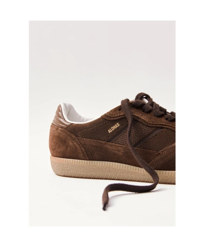 Подчеркните свой стиль с помощью этих коричневых низких кроссовок ALOHAS 'Tb.490 Rife'. Изготовленные из замши с коричневым кожаным задником, эти кроссовки имеют резиновую подошву, кожаную подкладку, круглый носок, шнуровку с плоскими шнурками, перфорацию по бокам и на мыске, кожаную нашивку с логотипом на язычке и золотистый логотип сбоку. Высота каблука: 2 см. Материалы: Верх, подкладка, стелька: 100% коровья кожа; подошва: 100% резина; отделка: 100% хлопок.