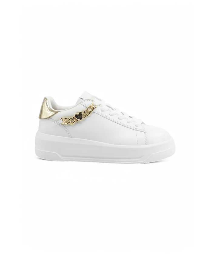 Кроссовки Love Moschino: Чистые белые кожаные кроссовки с массивной резиновой подошвой, созданные для повседневного образа и изысканного уличного стиля. Ключевые особенности: Белый | Золотой | Кожа | Шнуровка | Текстильные шнурки | Круглый носок | Массивная резиновая подошва | Платформа | Размеры и посадка: Толщина подошвы: 4,5 см | Общая высота обуви: 12 см | Приблизительный вес: 350 г | Состав и уход: Верх: Кожа | Подкладка: Текстиль / Кожа | Подошва: Резина