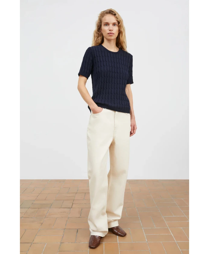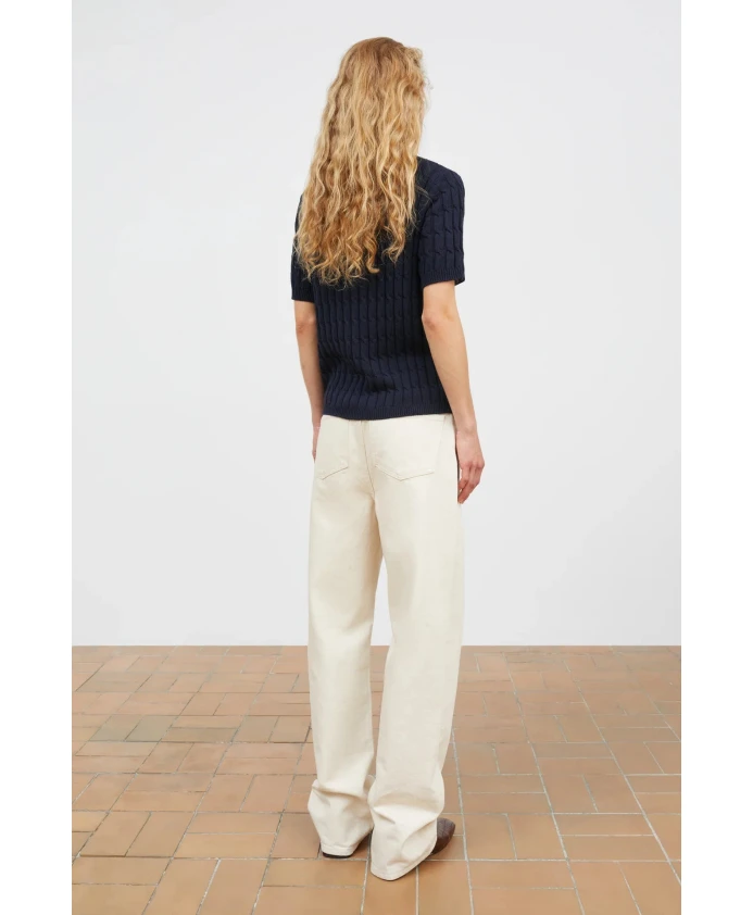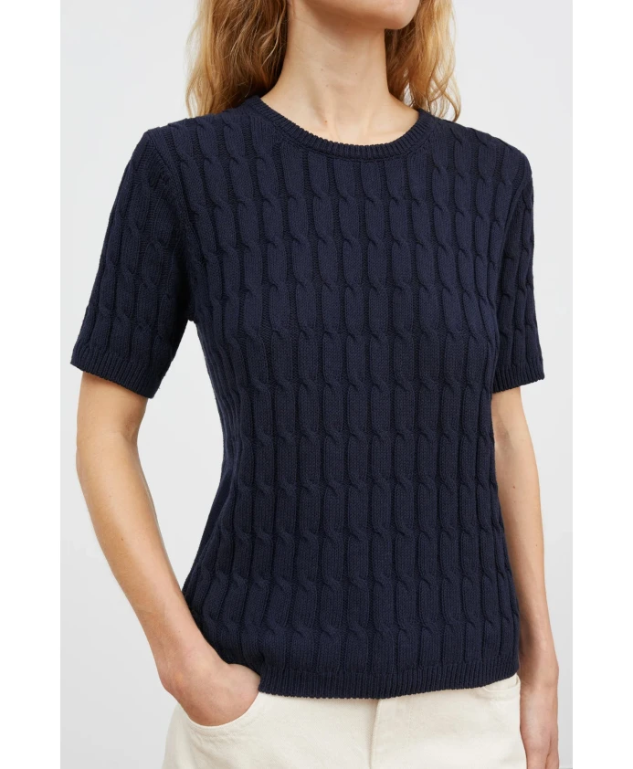 Пополните свою коллекцию трикотажных изделий пуловером Cathrine с короткими рукавами от Skall Studio. Этот трикотажный топ, изготовленный из 100% органического хлопка, украшен изящным узором «косичка». Широкий вырез горловины, рукава и нижний край отделаны тонкой ребристой вязкой. Для максимальной свободы движений рекомендуется выбирать свой обычный размер. Рост модели 177 см, размер S. Сделано в Италии из 50% органического хлопка и 50% переработанного хлопка.