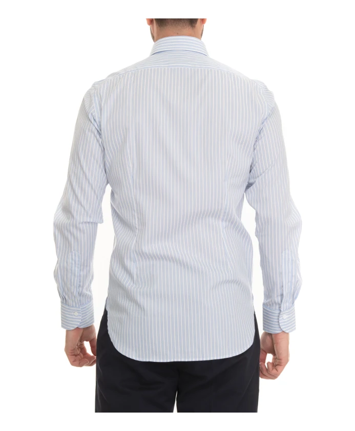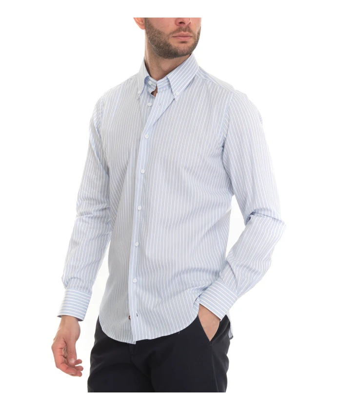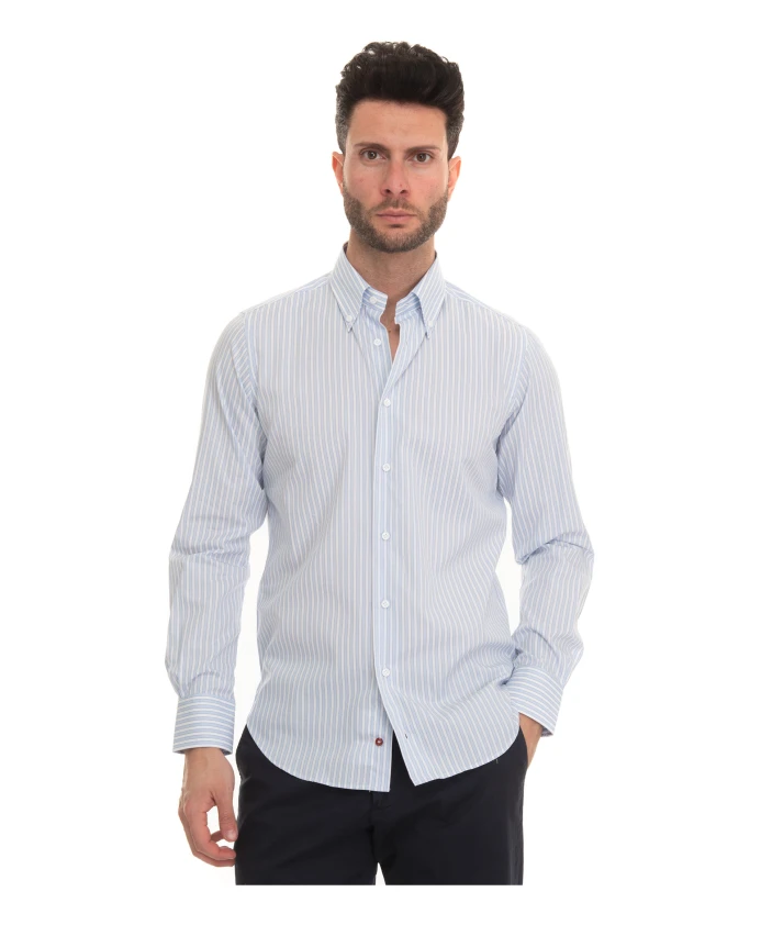 Рубашка свободного кроя на пуговицах с полосатым узором, в комплекте с подходящим клатчем для создания гармоничного образа. Классический крой и две вытачки на спине создают элегантный силуэт для повседневной носки. Ключевые особенности: Синий | Небесно-голубой | Хлопок | Легкий уход | В комплекте с подходящим клатчем | Воротник на пуговицах | Полосатый узор | Две вытачки на спине | Размер и посадка: Классический крой | Состав и уход: 100% хлопок | Легкий уход