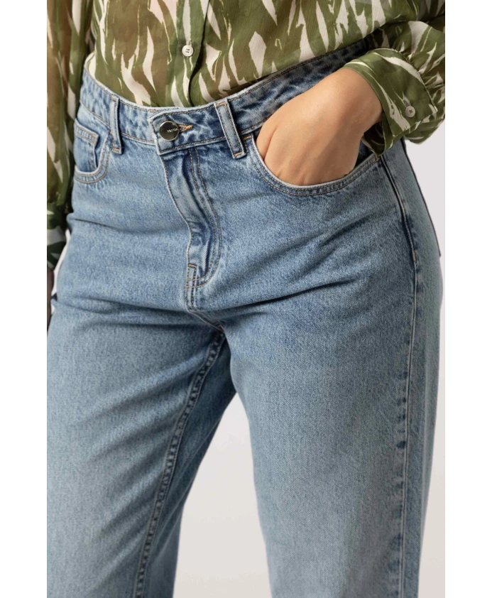 Модные джинсы Kocca до щиколотки с высокой талией, узкими прямыми штанинами, заканчивающимися выше щиколотки. Идеально подходят для повседневных образов, отличаются эффектом потертости и классическими деталями карманов. Ключевые особенности: Синий | Стандартная застежка на пуговицы | Карманы | Длина до щиколотки | Узкие прямые штанины | Эффект потертости | Размеры и посадка: Высокая талия | Прямые штанины | Длина до щиколотки | Рост модели 175 см, размер S/42