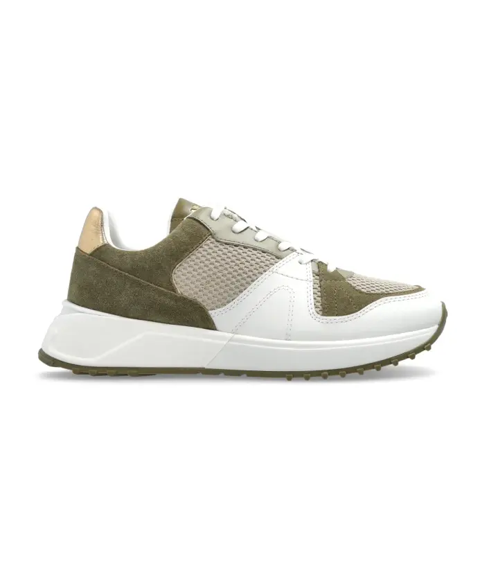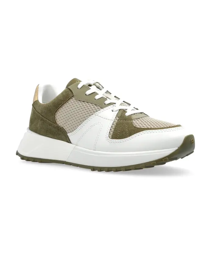 Откройте для себя кроссовки Jaime от Michael Michael Kors - идеальное сочетание спортивного стиля и роскошных деталей. Эти низкие кроссовки созданы для тех, кто ценит элегантность и современный дизайн. Ключевые особенности: Зеленый | Белый | Бежевый | Кожа | Замша | Сетка | Дышащий материал | Золотистая деталь на пятке | Белые шнурки | Золотой логотип на язычке и пятке | Размер и посадка: Стандартная посадка | Состав и уход: Кожа | Замша | Сетка | Не указано
