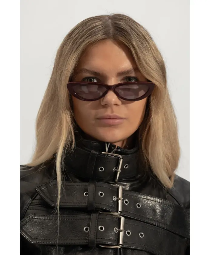 Женские солнцезащитные очки Alexander McQueen - это воплощение изысканности в сочетании с современным стилем. Смелый силуэт «кошачий глаз», сужающийся к краям, деликатно подчеркивает черты лица, создавая эффект, полный характера и исключительной элегантности. Оправа, изготовленная из изысканного ацетата глубокого бордового оттенка, впечатляет своей гладкой глянцевой поверхностью, а минималистичный дизайн дополняется сдержанными, но эффектными белыми линзами.