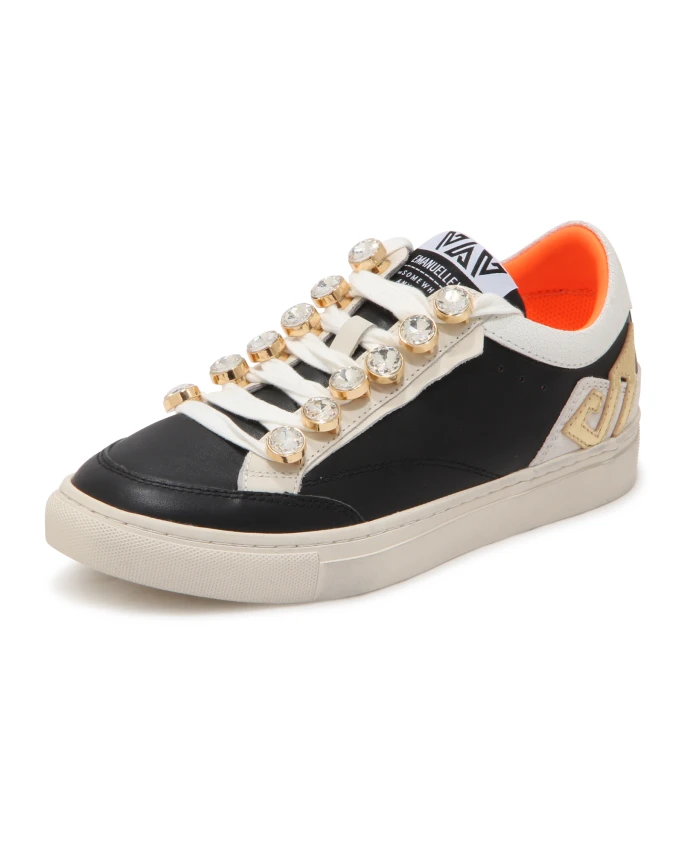 Кроссовки Emanuelle Vee Olivia сочетают в себе квадратный силуэт и украшенную стразами шнуровку, создавая эффектный повседневный образ. Идеально подходят для повседневных нарядов, которым нужен блеск без ущерба для комфорта. Ключевые особенности: Черный цвет | Многокомпонентный материал | Резиновая подошва | Эргономичная стелька для комфорта в течение всего дня | Детали из страз (драгоценных камней) на шнуровке | Квадратный силуэт | Многокомпонентные вставки
