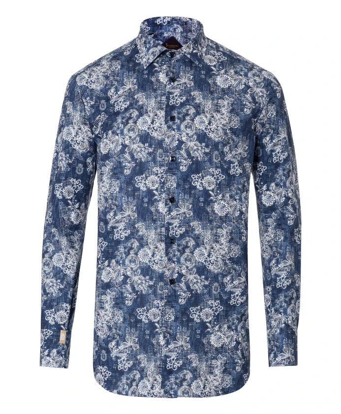 Рубашка Billionaire Slim Fit - это приталенная рубашка из эластичного хлопка с цветочным принтом по всей поверхности и изысканными деталями для создания элегантного повседневного образа. Ключевые особенности: Синий | Темно-синий | Хлопок | Эластичный | Съемные вставки для воротника | Цветочный принт по всей поверхности | Квадратные пуговицы Swarovski | Вытачки на спине | Серебристый крой | Воротник со съемными вставками | Размеры и посадка: Приталенный крой