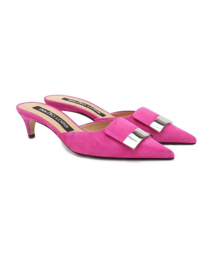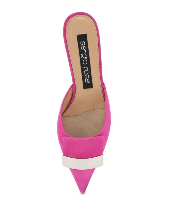 Кожаные мюли Sergio Rossi сочетают в себе заостренный носок, телячью кожу, имитирующую замшу, и металлический логотип, что делает их элегантным вариантом для дневного и вечернего выхода. Ключевые особенности: Розовый | Телячья кожа | Открытый каблук | Заостренный носок | Имитация замши | Металлический логотип на верхней части | Размеры и посадка: Высота каблука: 5 см | Состав и уход: Верх: 100% телячья кожа | Подкладка: Кожа | Стелька: Кожа | Подошва: Кожа