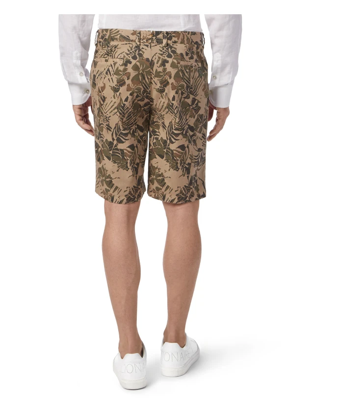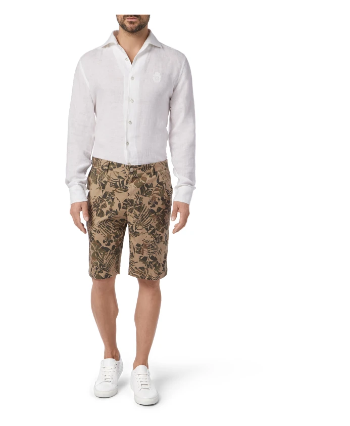 Шорты Billionaire Double B сочетают в себе лен и хлопок в силуэте бермудских шорт с принтом в виде пальмовых листьев, создавая изысканный, но в то же время удобный вариант для теплой погоды. Ключевые особенности: Бежевый цвет | Лен и хлопок | Застежка на одну пуговицу с логотипом | Два накладных передних кармана | Два прорезных задних кармана | Принт в виде пальмовых листьев по всей поверхности | Силуэт бермудских шорт | Размеры и посадка: Приталенный крой