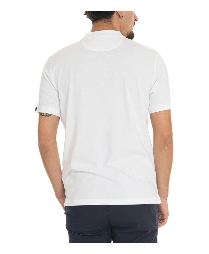 Поло Fay из хлопка с логотипом - это трикотажная рубашка-поло, сочетающая классическую застежку на три пуговицы с фирменной деталью на рукаве. Она создана для повседневной носки в стиле smart-casual и комфорта. Ключевые особенности: Белый | Хлопок | Трикотажная ткань | Застежка на три пуговицы | Небольшие боковые разрезы | Воротник-поло | Короткие рукава | Однотонный цвет | Логотип на рукаве | Размер и посадка: Стандартный крой | Состав и уход: 100% хлопок