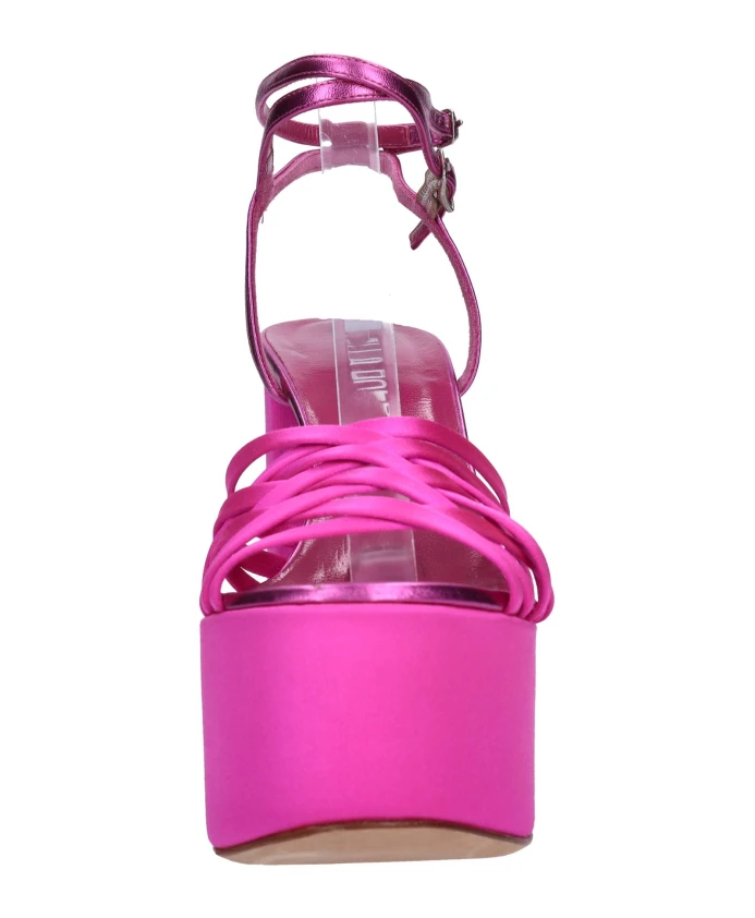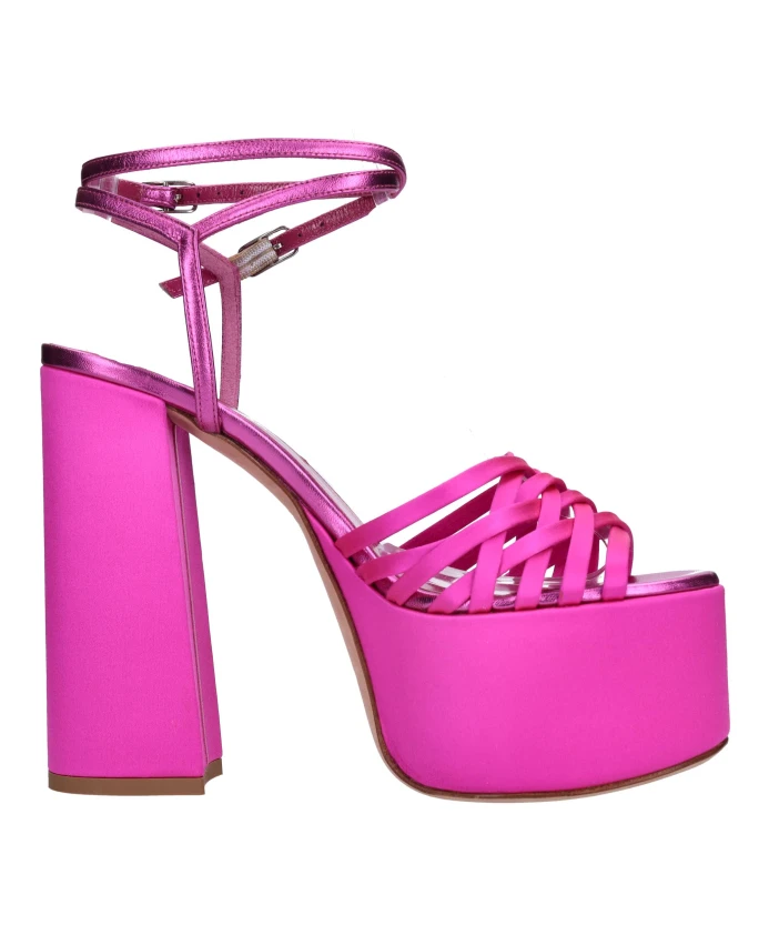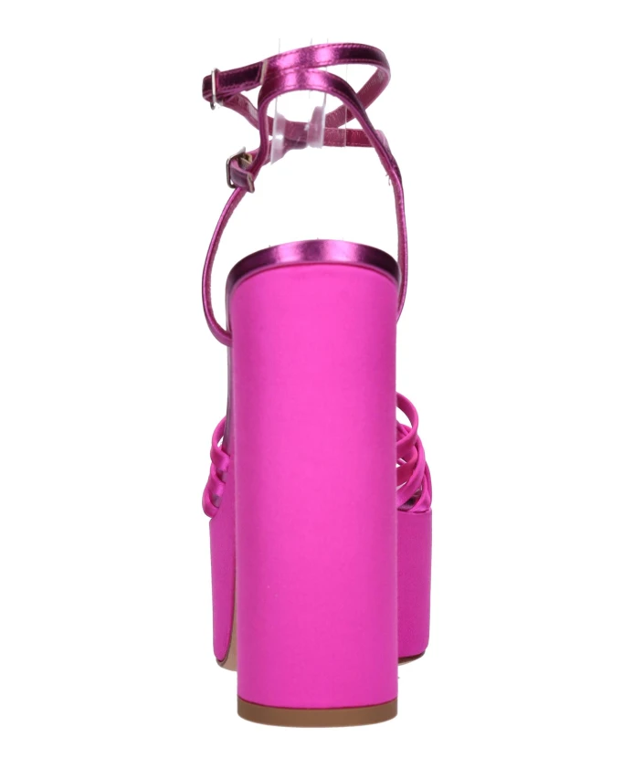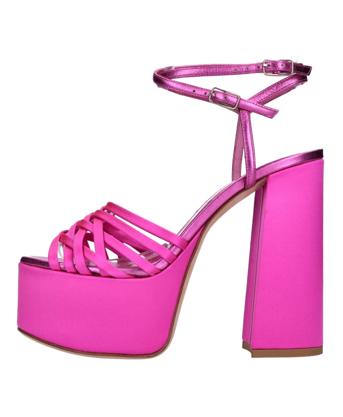 Атласные сандалии Lella Baldi сочетают в себе атласный верх и приподнятую платформу, создавая шикарный вечерний образ. Кожаная подкладка и подошва обеспечивают поддержку и комфорт при длительном ношении. Ключевые особенности: Розовый | Фуксия | Атлас | Платформа | Кожаная подкладка | Кожаная подошва | Атласная отделка | Высокий каблук | Размеры и посадка: Платформа: 5 см | Высота каблука: 13 см | Состав и уход: Атлас | Кожаная подкладка | Кожаная подошва