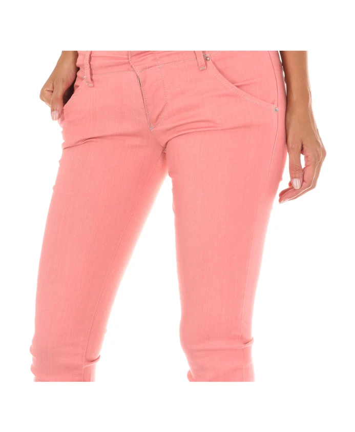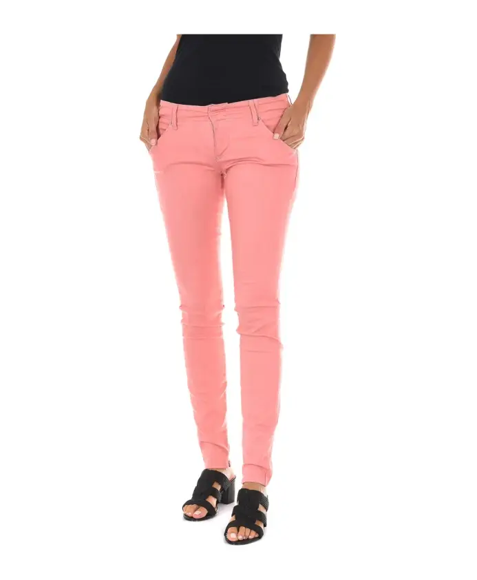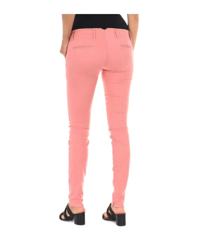 Женские узкие брюки MET. Длинные брюки с петлями для ремня, застежкой на пуговицу и молнию спереди. Два передних кармана и два декоративных задних кармана. Зауженный крой. Изготовлены из эластичной ткани с видимыми швами в тон. Состав: 58% хлопок, 20% вискоза, 20% полиэстер, 2% эластан. Инструкции по уходу: Машинная стирка при температуре до 40°C. Гладить при средней температуре до 110°C. Сушить в сушильной машине. Не отбеливать. Не подвергать химчистке.