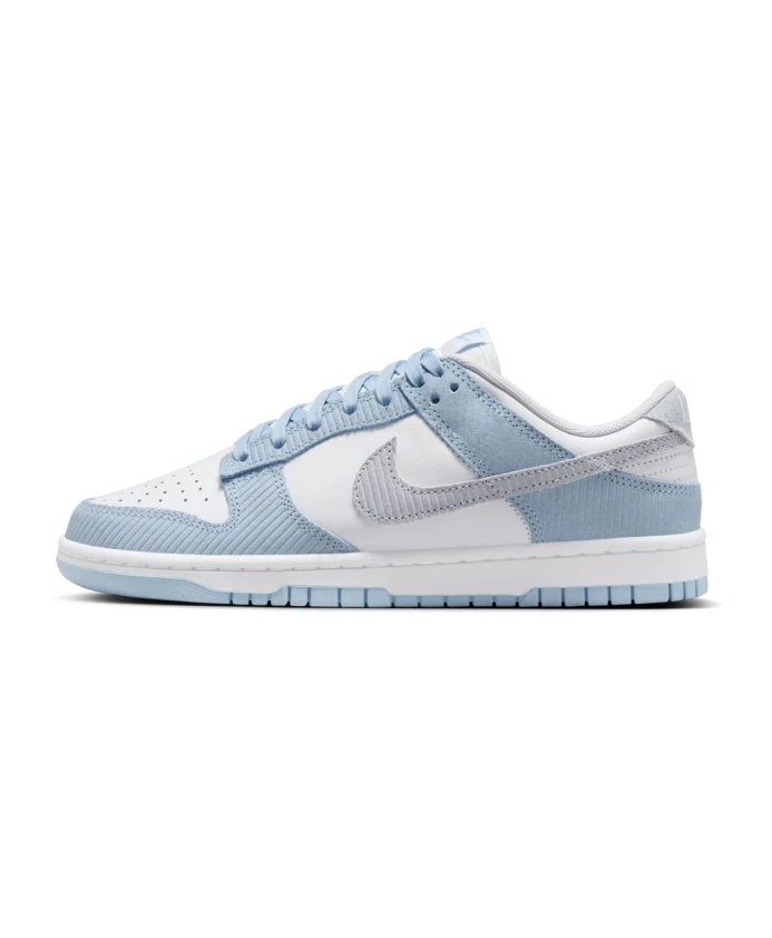 Nike представляет Dunk Low Corduroy - низкие кроссовки, сочетающие текстурированные вельветовые накладки с простой кожаной основой, создающие винтажный уличный стиль. Ключевые особенности: светло-голубой цвет | белый | серый цвет | вельвет, кожа | прочная конструкция для повседневной носки | традиционная шнуровка | резиновая подошва для сцепления | низкий силуэт | вельветовые накладки | кожаная основа | белая межподошва | контрастная подошва серого цвета