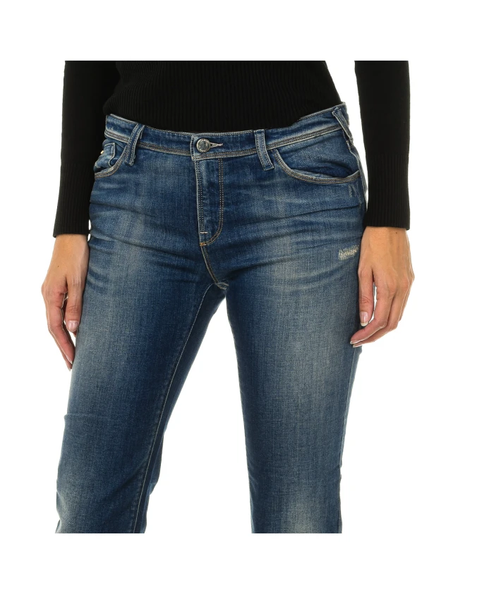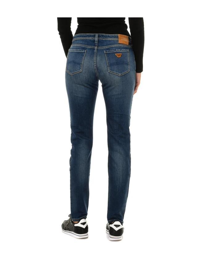 Джинсы Armani Jeans зауженного кроя для женщин. Длинные джинсовые брюки с петлями для ремня, застежкой на молнию и пуговицу спереди. Два передних кармана, включая небольшой карман. Два задних кармана с логотипом. Эффект потертости и строчка в тон. Состав: 98% хлопок, 2% эластан. Инструкции по уходу: Машинная стирка при температуре до 30°C. Гладить при средней температуре, максимум 110°C. Сушить в сушильной машине. Не отбеливать. Не подвергать химчистке.