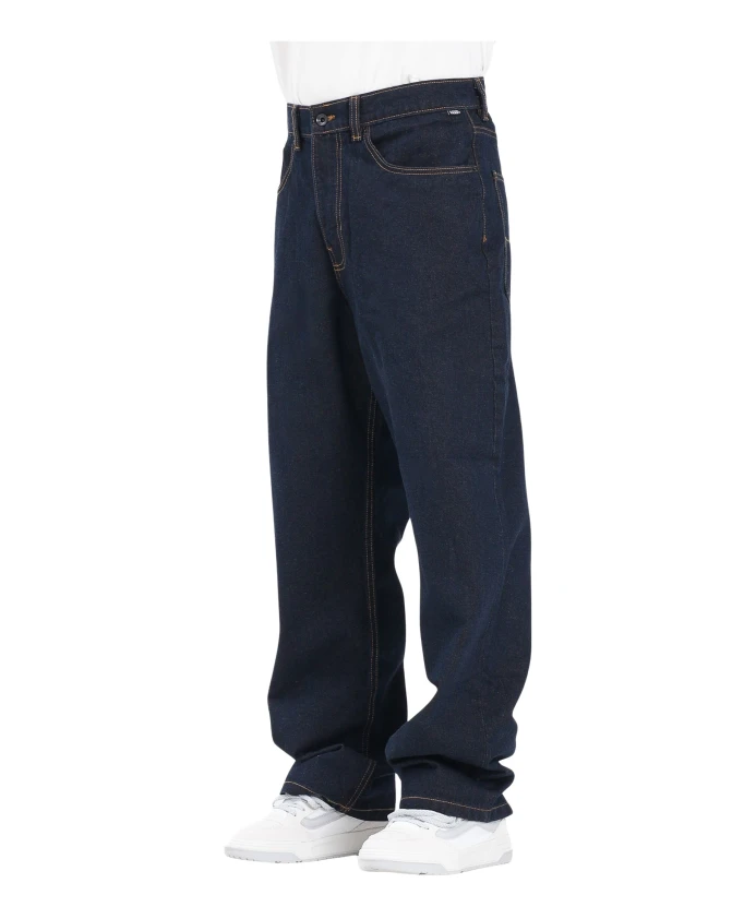 Подчеркните свой стиль с помощью джинсов Vans Check-5 Loose Jeans синего цвета для мужчин. Эти джинсы свободного кроя - современная интерпретация классического стиля, идеально подходящая для повседневной носки или катания на скейтборде. Изготовлены из 100% хлопка, имеют темный оттенок и универсальный крой. Рекомендуется машинная стирка при средней температуре. Идеально подходят для осенне-зимнего сезона. Модель носит размер 34 (+14) и имеет рост 187 см.