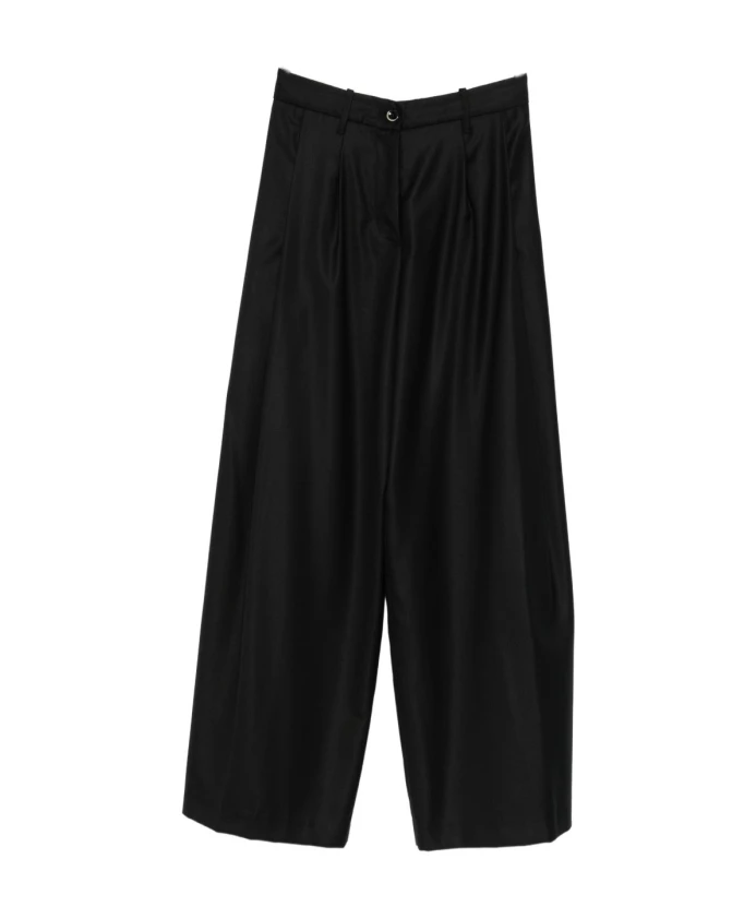 Брюки Nine In The Morning Petra сочетают в себе широкий силуэт и сшитые по фигуре детали, что делает их универсальными как для повседневной носки, так и для особых случаев, обеспечивая элегантную и удобную посадку. Ключевые особенности: Черный | Черный | Застежка на пуговицу и молнию спереди | Шлевки для ремня | Боковые карманы | Задние накладные карманы | Широкие штанины | Складки | Приталенный крой | Размеры и посадка: Свободный крой | Широкие штанины